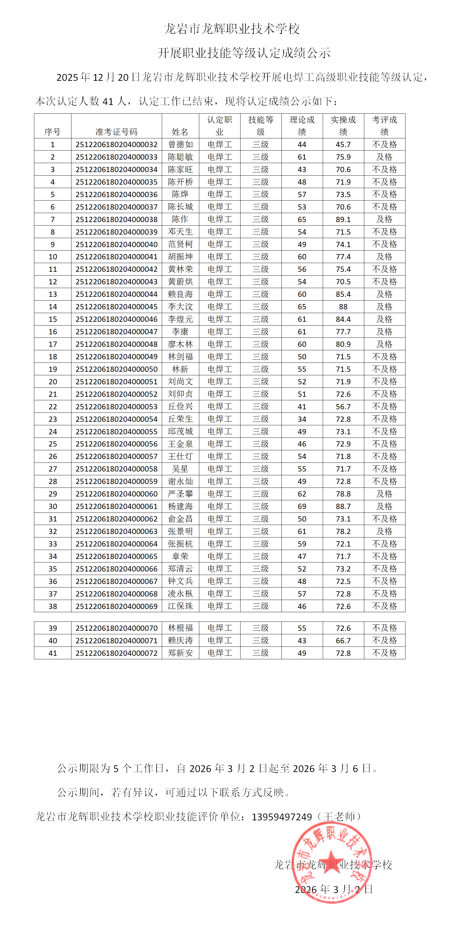 成绩公示2025.12.20焊工