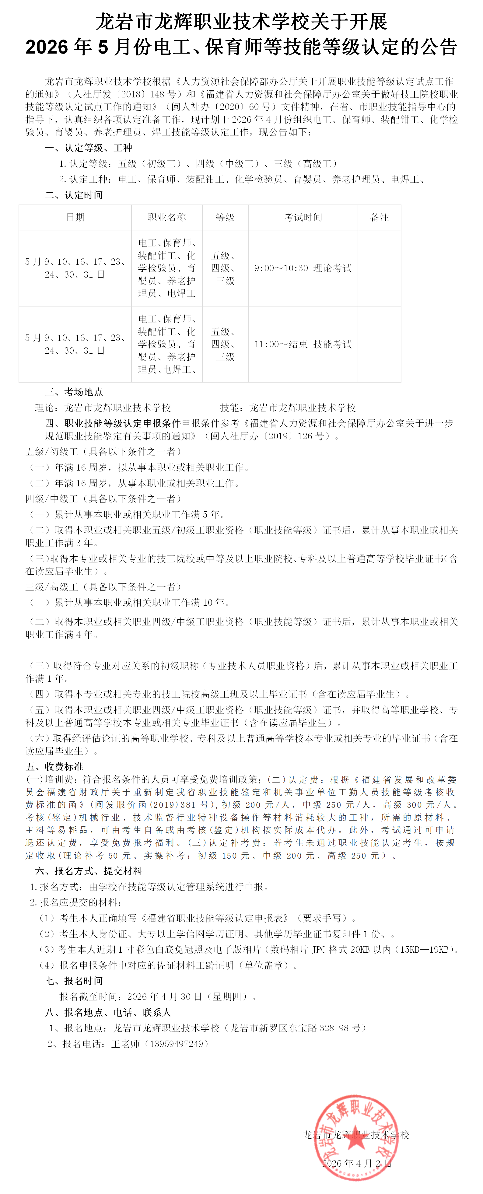 2026年5月份电工、钳工、保育师、化学检验员公示